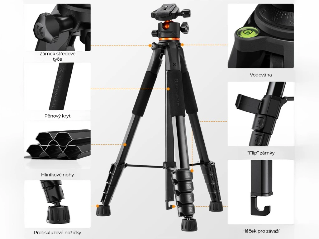 KF Concept foto stativ s kulovou hlavou pro kamery, smartphony i tablety (výška až 190cm)
