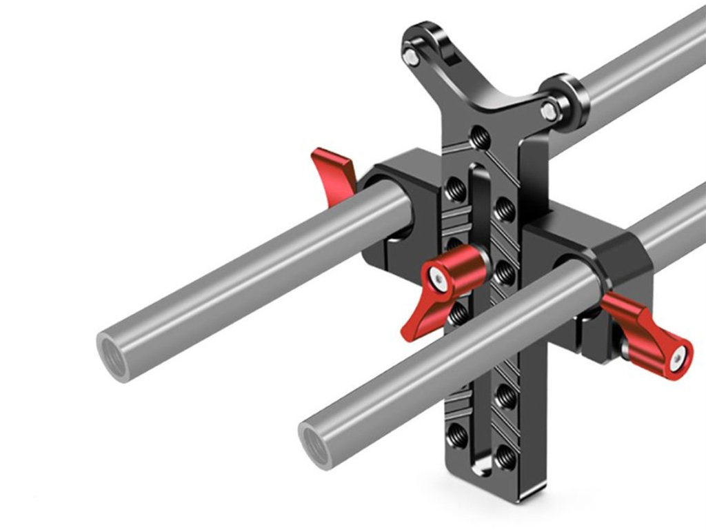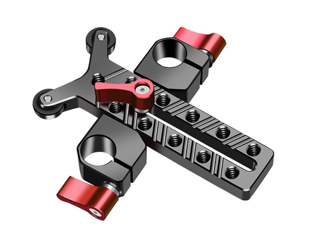 Precizní podpora pro objektivy na 15mm tyče. Přesná CNC výroba z kvalitní hliníkové slitiny.