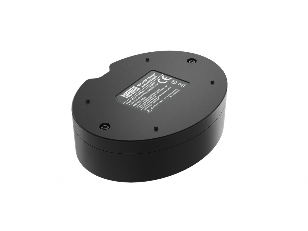 Duální nabíječka je naprosto bezpečná, obsahuje totiž ochranu proti přehřátí a přebíjení. Nabíječka obsahuje dva oddělené kanály, takže zároveň můžete dobíjet dvě baterie. Nechybí ani indikátor stavu nabití, a díky svým kompaktním rozměrům se vejde kamkoliv.