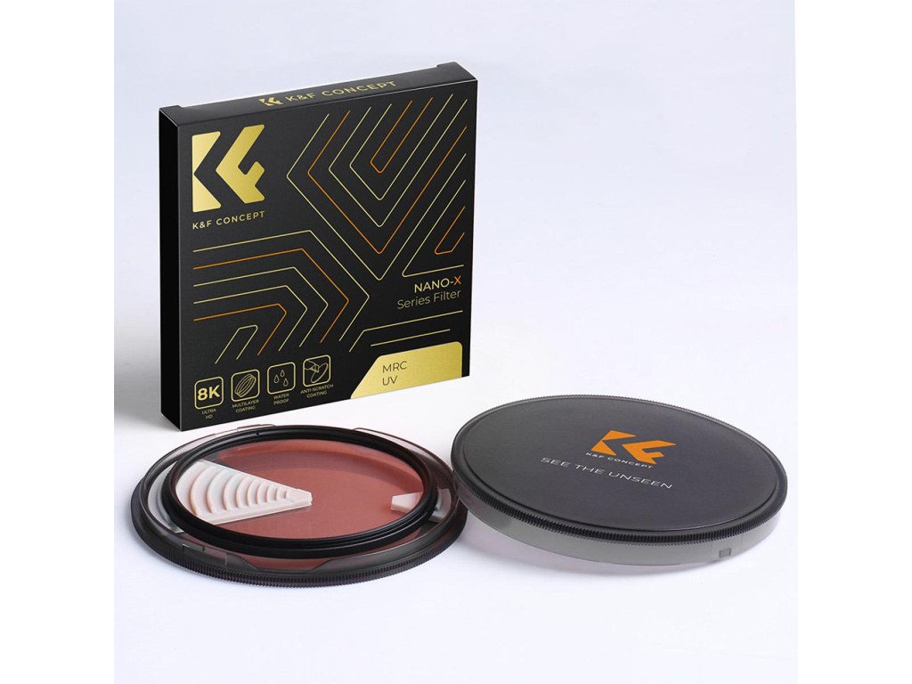 KF Concept Nano-X MCUV filtr je navržen s pokročilou technologií 18 vrstev vícevrstvých nanotechnologických povlaků, které efektivně blokují škodlivé UV záření a snižují riziko nechtěné mlhy na fotografiích. Tento filtr také zlepšuje kontrast a celkovou ostrost snímků, čímž přináší vyšší kvalitu výsledných záběrů. Kromě optického vylepšení nabízí filtr ochranu objektivu před prachem, vodou, otisky prstů a poškrábáním, což z něj dělá ideální volbu pro každodenní fotografování v různých podmínkách.