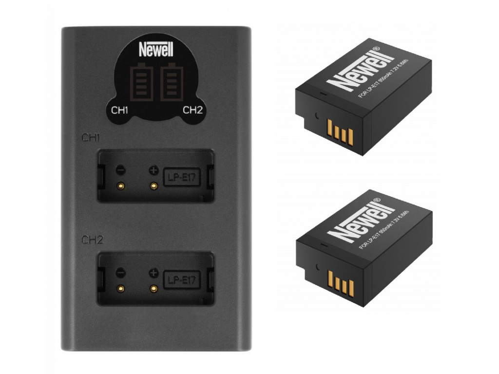 Dvoukanálová nabíječka a dvě baterie LP-E17 Newell DL-USB-C pro Canon Nejkvalitnější náhradní baterie na trhu